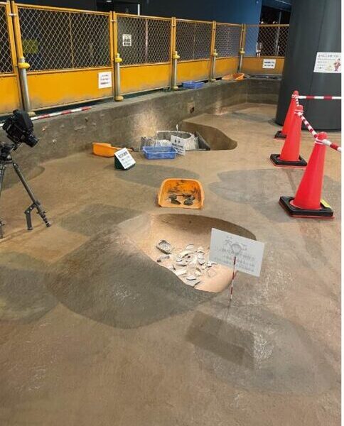 - 展示室を歩かれる際には、ぜひ足元にもご注目ください。10階では復元大極殿の柱が一部床面の丸い柱として、9階では川と陸のさかい目がカーペットの色の違いとして、7階では地下鉄ホームのすべり止めがタイルの向きの違いとして、それぞれ表現されています。 わた推し人/学芸員(り)